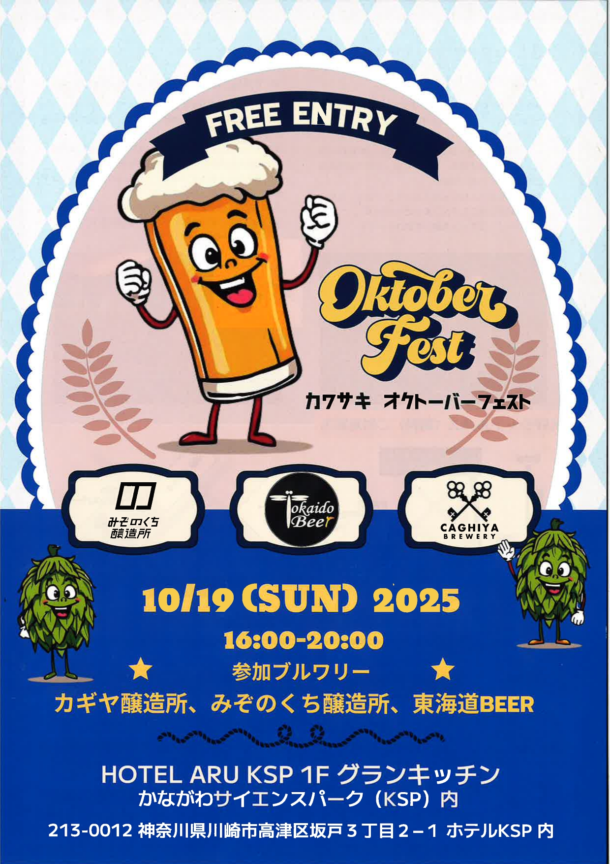 川崎市に拠点を置く3つのクラフトビール醸造所が共同で開催するビールイベントが、2025年10月19日に当ホテルのレストラン「Grandkitchen」で開催されます。